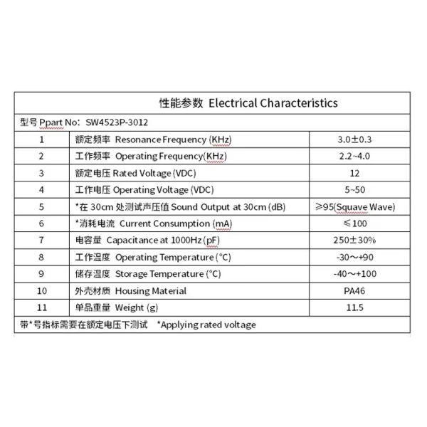 1.Piezoelectric passive buzzer smoke alarm buzzer specfication: